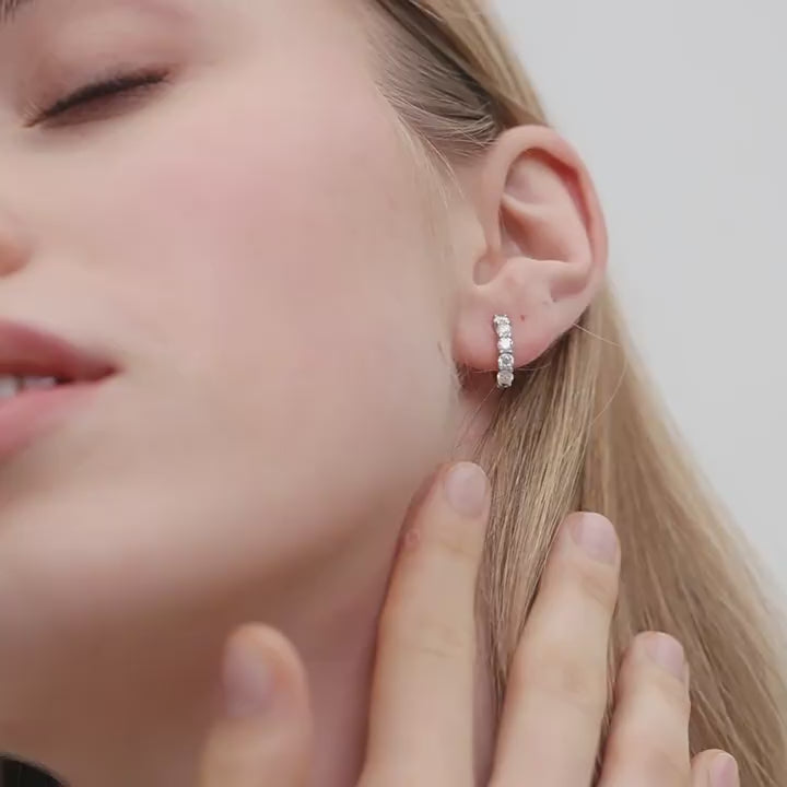 Elevate your style with these Moissanite Hoop Earrings, beautifully crafted in 925 sterling silver. Each earring features a row of dazzling round-cut moissanite stones, carefully set to maximize brilliance and fire. The sleek hoop design offers a perfect balance of modern elegance and timeless sophistication, making them ideal for both daily wear and special occasions.